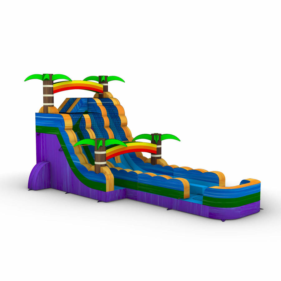 Don't miss out on the opportunity to elevate your event with our 17/19ft Dual Lane Wet/Dry Slide. Contact us today to reserve this thrilling attraction and make your event an unforgettable success!